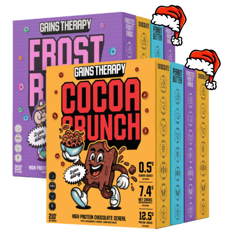 Niezależnie od tego, czy dążysz do osiągnięcia celów fitness, ograniczasz spożycie węglowodanów, czy po prostu chcesz zjeść sycące śniadanie Gains Therapy® są idealnym rozwiązaniem. Wsyp je do miski z mlekiem, posyp jogurtem lub jedz prosto z pudełka. Twoje śniadanie właśnie zyskało nową jakość. Gains Therapy® Cereal to sposób na rozkoszowanie się bogatym smakiem bez wyrzutów sumienia, a jednocześnie dostarczenie organizmowi dużej dawki białka.